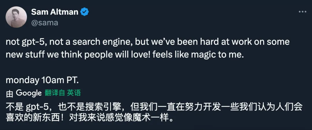 其实奥特曼在X上早就说了,不是gpt5,也不是搜索,但对他来说像魔法一般。