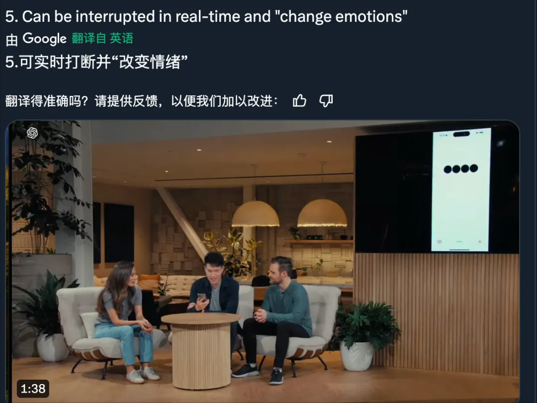 现在好了,新版GPT4o可以随时打断,随时插嘴了。