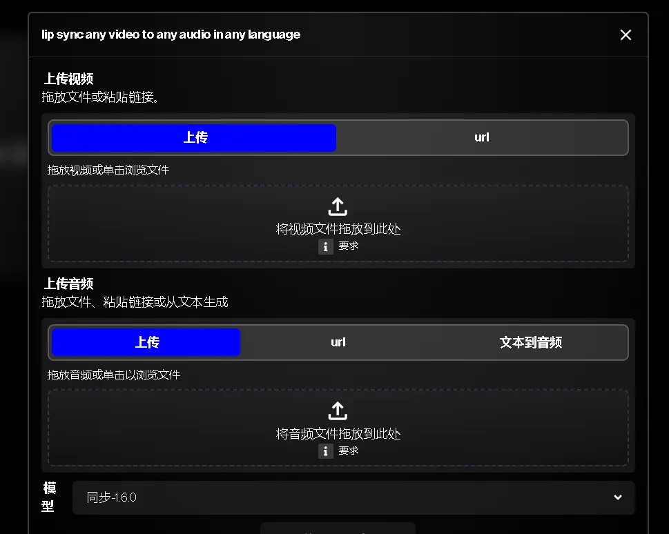 - 打开 synclabs 提供的免费口型模拟工具 synclax。