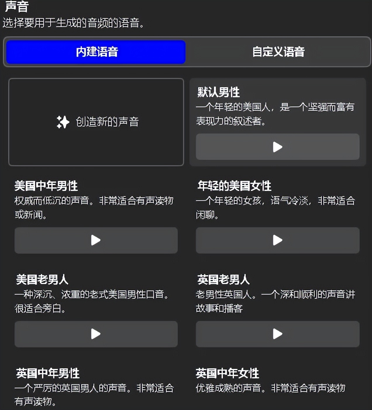 当使用文本到音频的时候,系统自带的音频都很播音腔