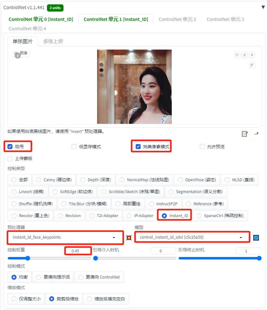 【第三步】ControlNet插件InstantID模型设置