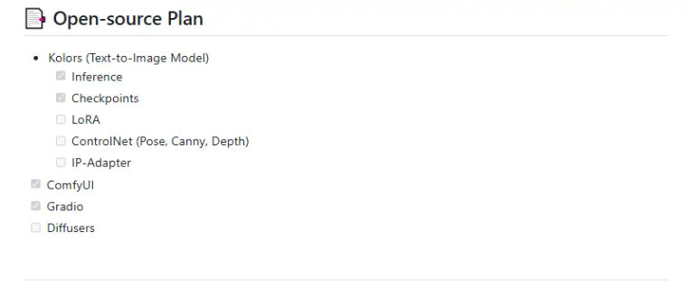 并且在github主页上表示了开源计划,模具已经开源了接口和大模型,后续会开源出kolors的Lora,controlnet等等,着实让人期待。