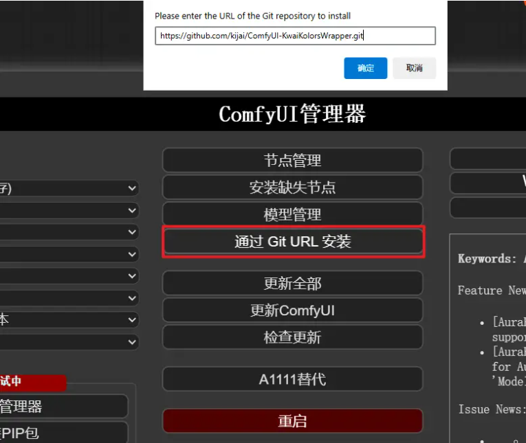 复制后我们到comfyui管理器安装,安装完成后重启