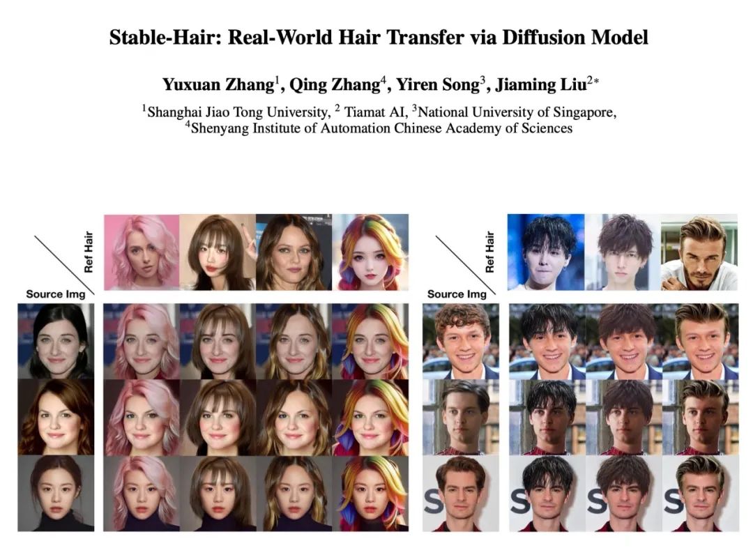 这个 AI 换发型技术是上海交通大学联合退格数字共同研发的基于扩散模型的框架——Stable-Hair!可能大家对退格数字不太熟悉,它其实是由上海科技大学孵化的 Tiamat 团队与行业资深从业者共同组建的。
