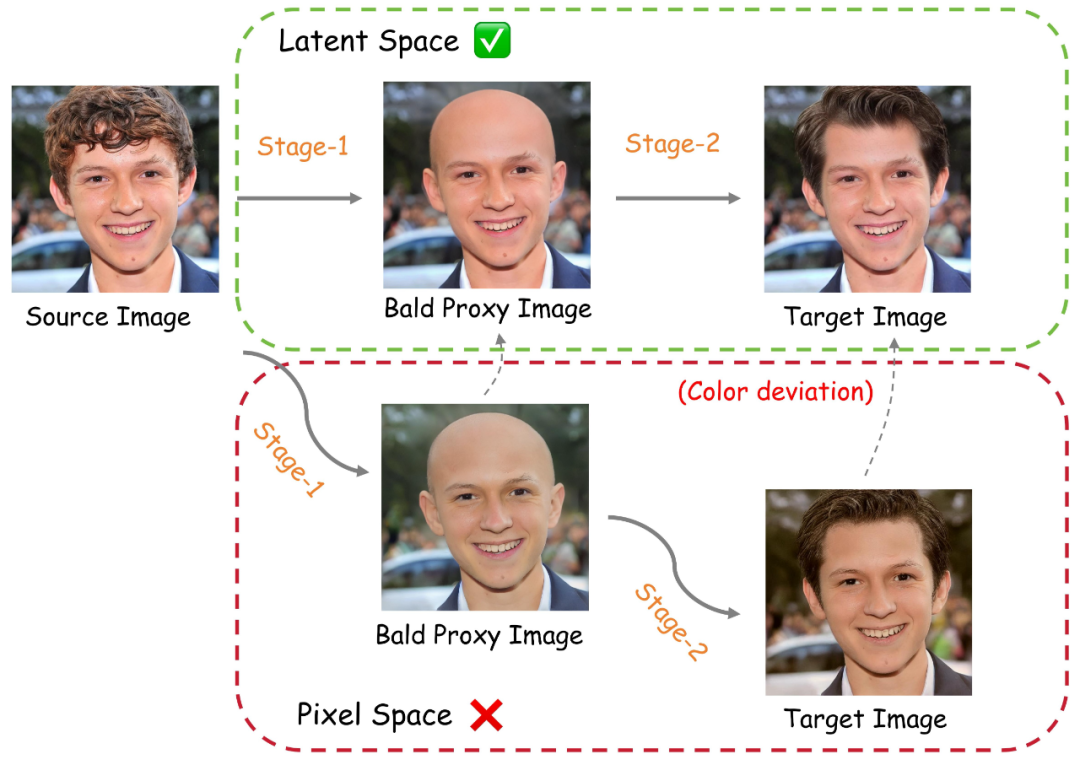 它能将整个过程从像素空间映射到潜在空间,有效解决了之前方法常见的颜色不一致问题。