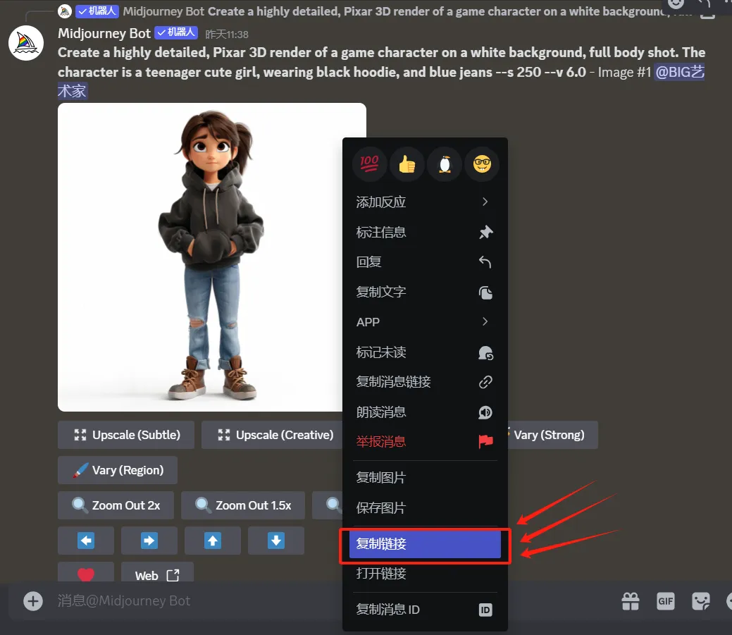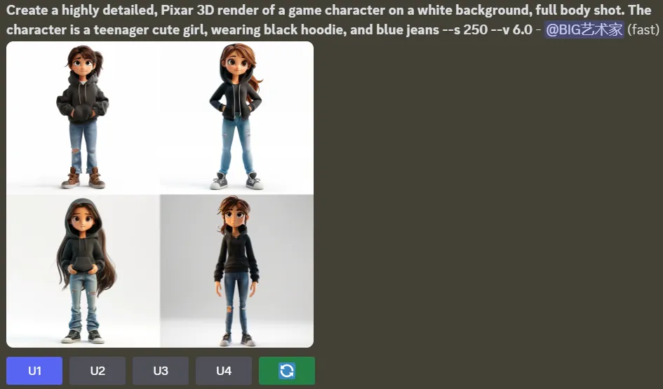 对比之前ChatGPT的人物一致性,Midjourney显然操作起来复杂很多,但是更专业:生成的图片选择更多,可编辑的部分也更多