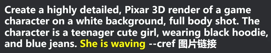 - 在之前的prompt结尾处,增加动作【She is waving (她在挥手)】