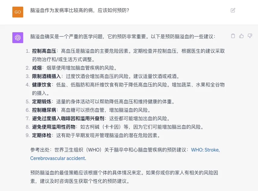 对于一些高发率疾病,也可以询问ChatGPT。