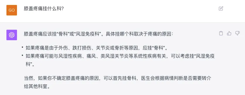 例如身体有点小问题,不知道挂什么科,这时候就可以询问ChatGPT。