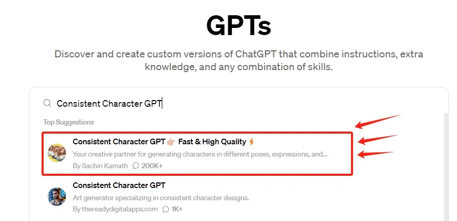 前往GPT商店,在搜索栏输入“Consistent Character GPT”