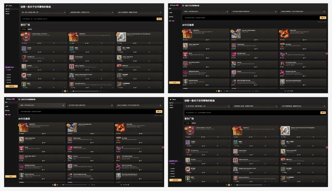 不同的公司、不同的域名、同样的Suno主界面,你能分辨出下面哪一个是正版吗?