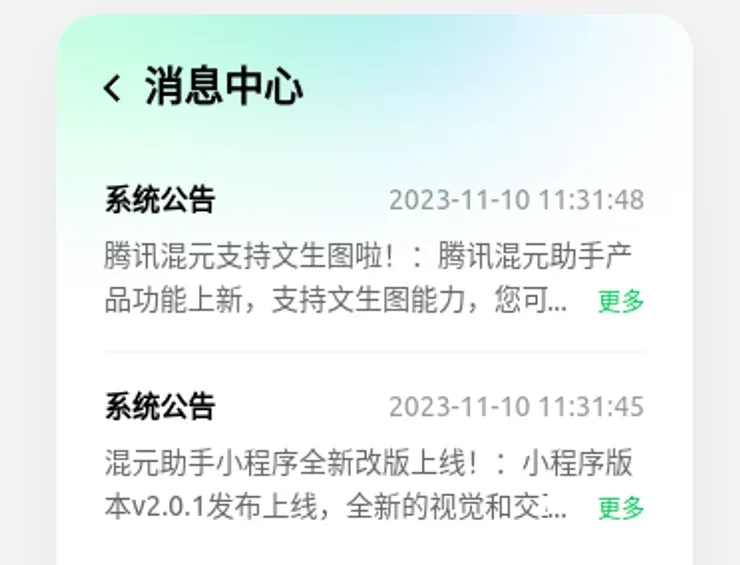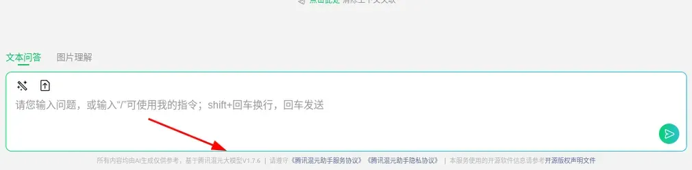 The first is that it's marked at the bottom as being based on Tencent's Hybrid Grand Model V1.7.6, and there's no latest open source news in the message center either