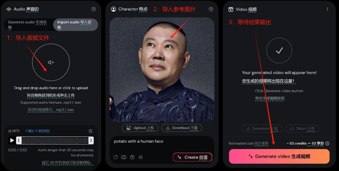 Hedra currently generates 5 free standards per day, and currently only supports the generation of videos with a 1:1 aspect ratio, and will soon launch the more popular 16:9 ratio.
