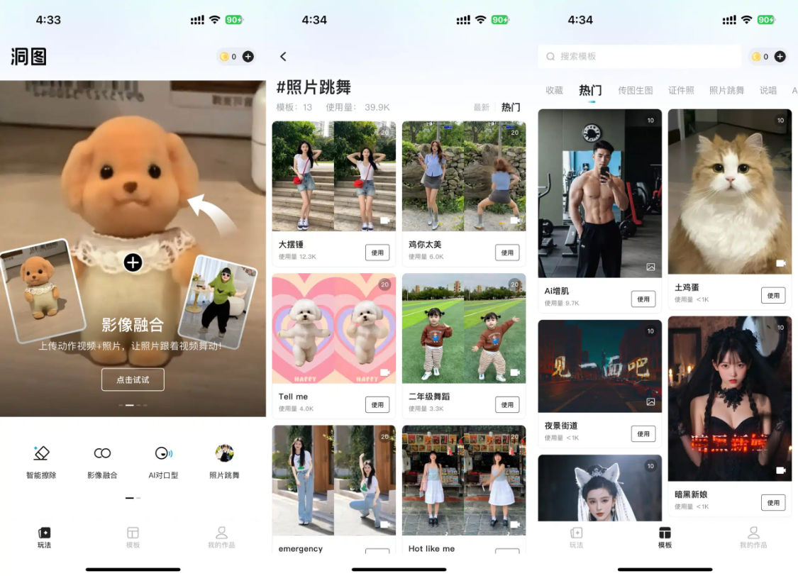 Cave Photo is a photo editing APP with many interesting and convenient functions, using Cave Photo's powerful AI generative technology, you can easily convert static photos singing and dancing into dynamic GIFs or videos, and you can also eliminate the flaws in photos and fine-tune the pictures with one click. Cave Photo also provides users with a variety of high-quality AI image processing templates, aiming to save users the process and time of P picture, and quickly produce pictures with one click, which is very suitable for designers, social media operators, photographers, enthusiasts and other groups to use.
