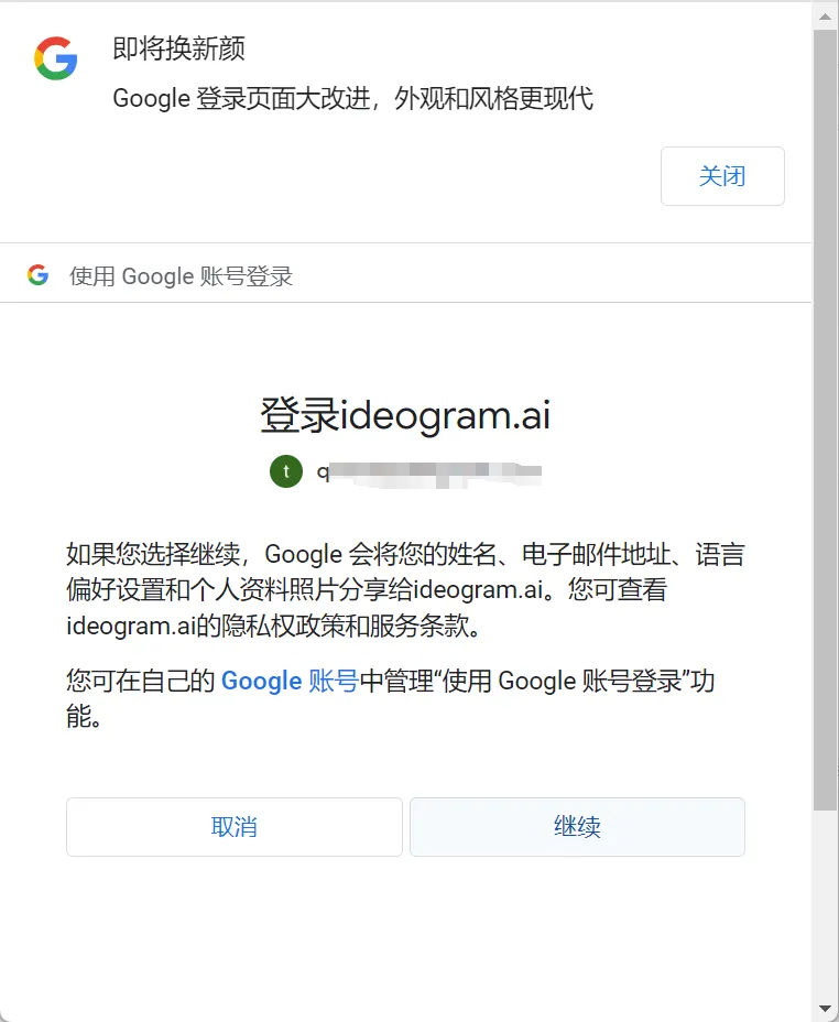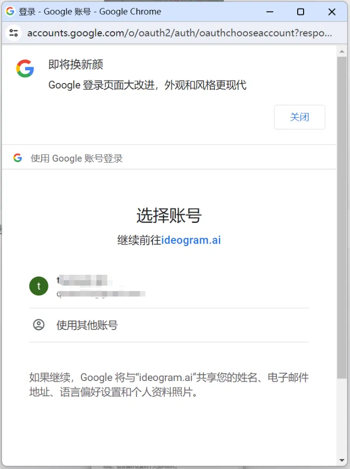 - Select an existing Google account, log in and continue to the ideogram.ai website.