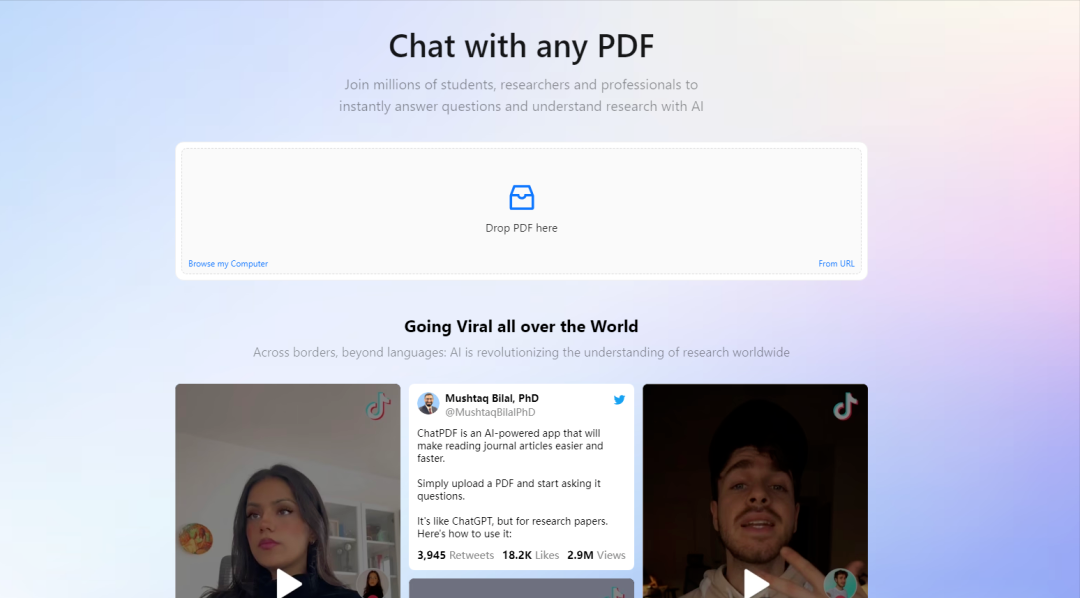 如果你使用 ChatPDF,你可以从设备上传PDF,或者输入一个含有PDF的URL。