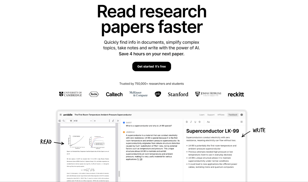 要使用Unriddle,你只需登录并上传文件,或者复制粘贴文本,亦或者提供文件链接。Unriddle支持的文件类型包括PDF、DOCX、PowerPoint和Excel。