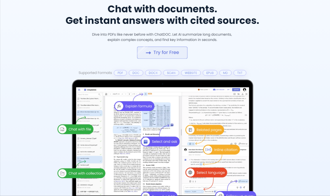 ChatDOC 是一款基于 ChatGPT 的 PDF 和文件阅读助手,它能分析文档并为你提供其中的信息。要使用 ChatDOC,你只需创建一个账户,并上传任意 PDF 或文档。