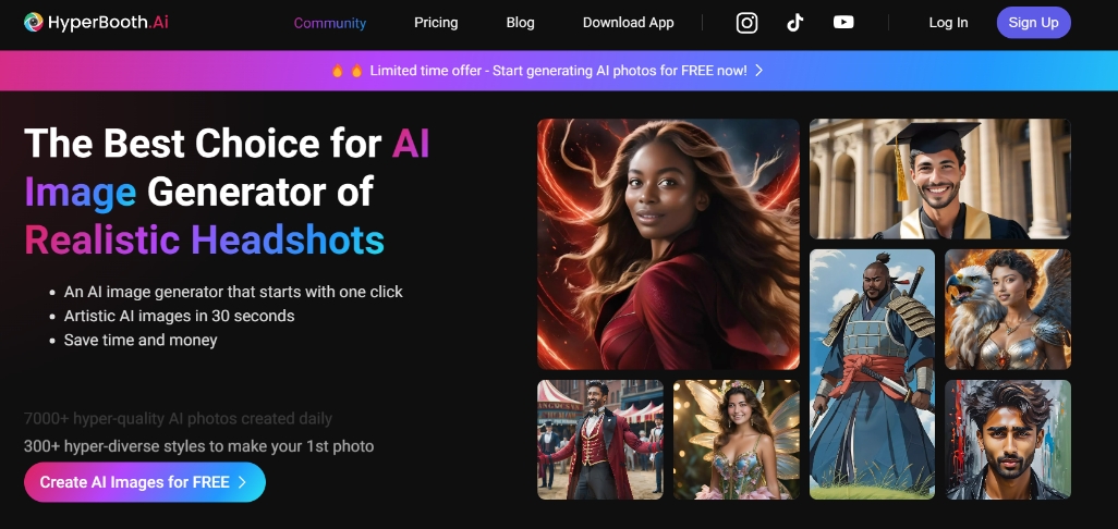 HyperBooth是一款AI图像生成器,可以通过上传一张自拍照片,即可快速生成逼真的AI图像,支持超过300种不同风格的照片生成,操作简单,速度快。