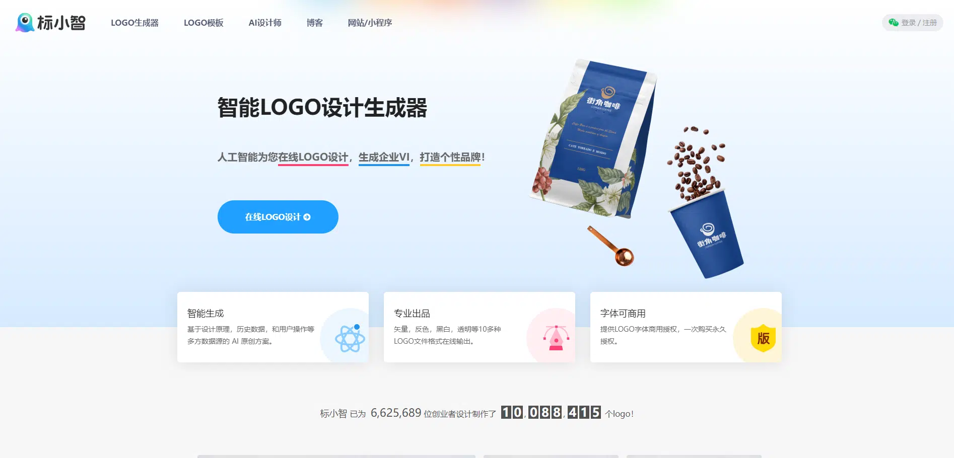 标小智支持注册登录后免费试用,免费用户可自由生成、编辑 LOGO,下载则需购买会员。