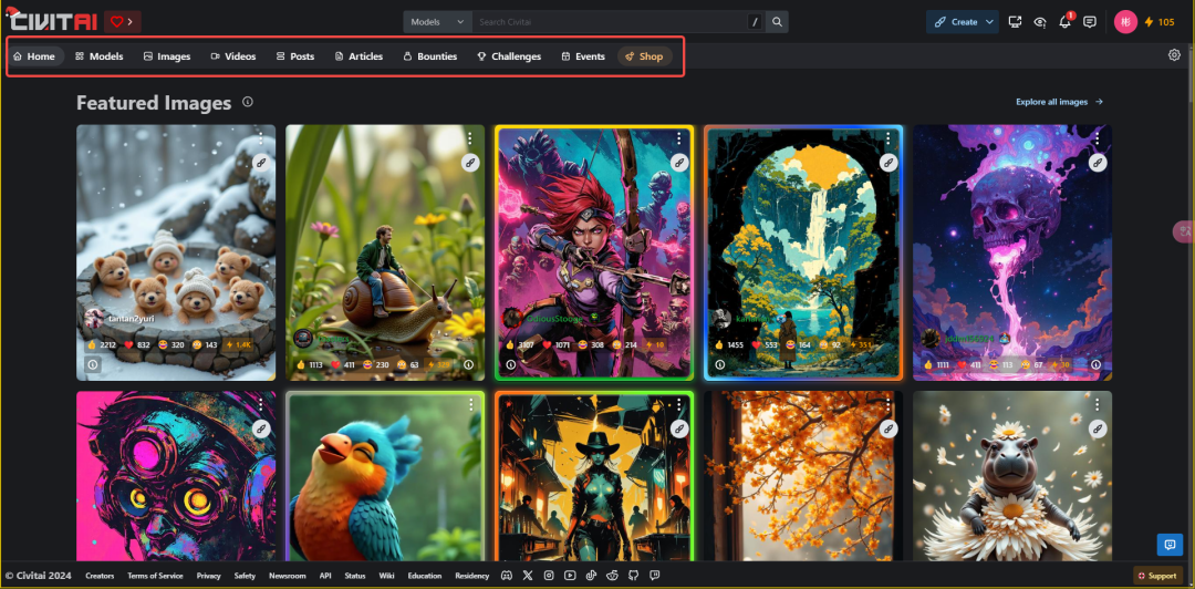 C站包含模型、图片、作品集和文章等几大板块,用户可以根据需要在这些板块间切换。