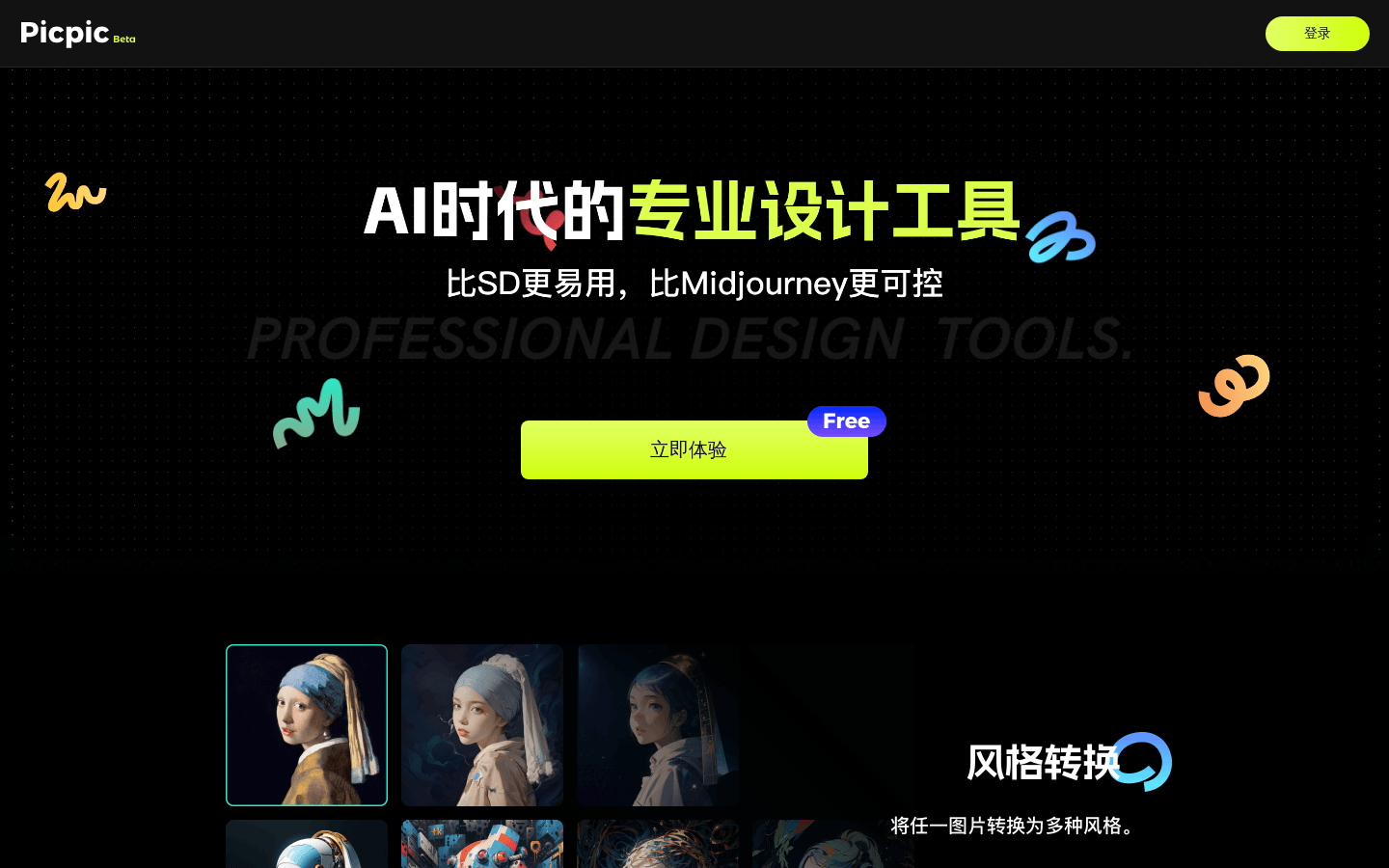 Picpic is a program developed by Beijing Singularity Star Technology Co.AI Designtool, which utilizes AI technology to help users quickly complete design tasks and improve design efficiency and quality. Background information on the product includes that it was developed by a team of professionals and combines the latest AI technology, aiming to provide designers and design enthusiasts with a convenient design solution. The product is positioned to meet diverse design needs and offers flexible payment options in terms of price to accommodate different users.PicPic Designed to provide designers with an easier to use and more controllable professional AI painting tool, compared to other AI painting tools on the market, a professional AI painting tool more suitable for designers, easier to use than stable diffusion, more controllable than Midjourney, which provides features and experience more suitable for professional designers.