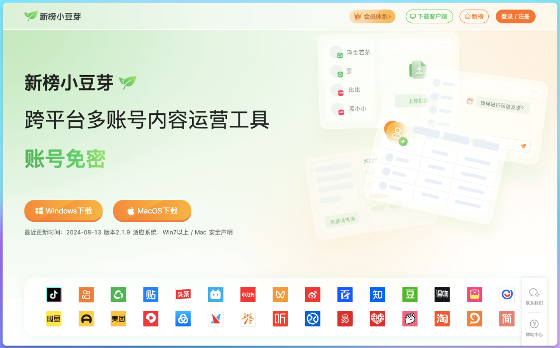 New List Small Bean Sprout: Cross-platform multi-account content operation tool, batch/timed publishing, AI mixing and pruning, private message alerts