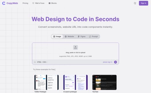 CopyWeb:一款AI网页设计转换工具,网页克隆与代码生成平台