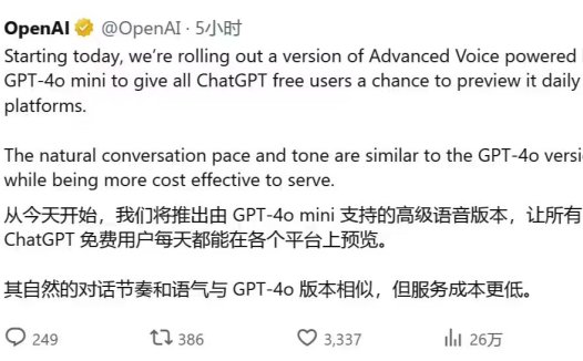 告别打字:OpenAI免费开放 ChatGPT AI语音聊天,GPT-4o mini 加持